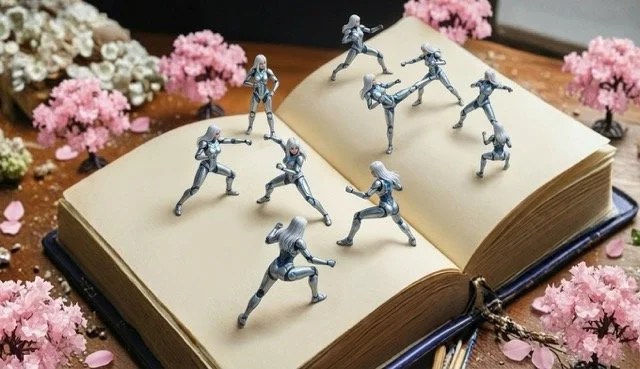 Nano Banana Pro is different; it easily added the anime ladies onto my little book, letting them fight like Xena the warrior woman.